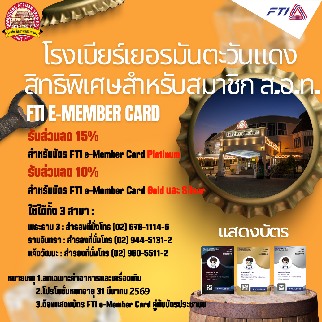 ส่วนลดพิเศษ 10%-15% สำหรับผู้ถือบัตร FTI e-Member Card
